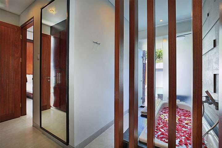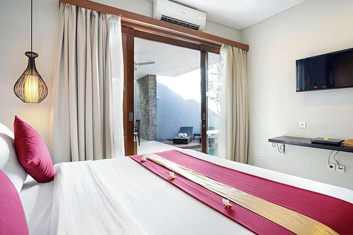 Here are some images on the property of Samaja Villas Kunti Seminyak Bali depicting the application of health protocols, one-bedroom villa, two-bedroom villa, various facilities as well as Warung Samaja. One Bedroom Villa